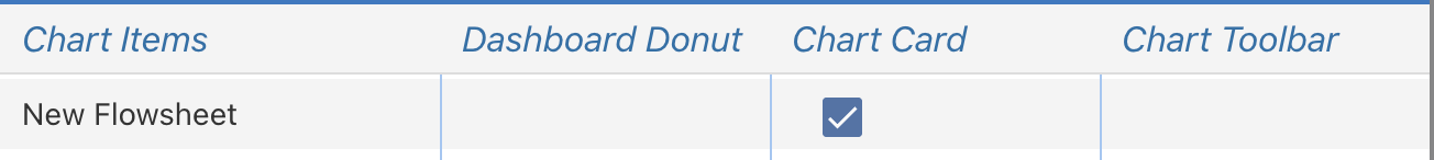 Once set up, the "Flowsheets" chart card will appear in each client’s chart.